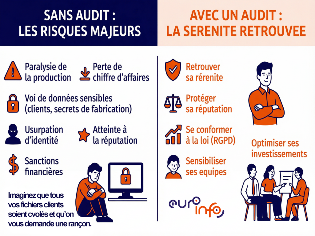 Pour un dirigeant comme vous, un audit de sécurité n’est pas une dépense, mais un levier pour sécuriser votre croissance. Voici comment cela peut transformer votre quotidien :
